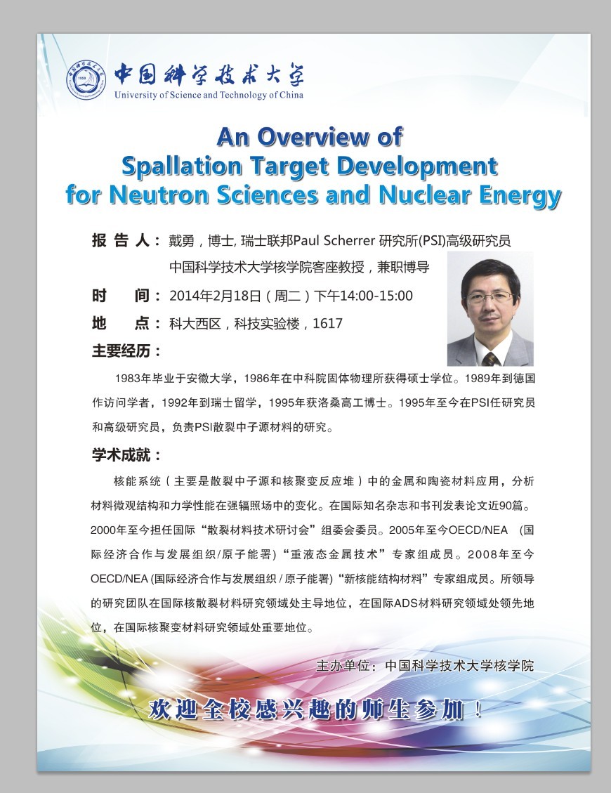 2014年2月18日 戴勇博士学术报告:An Overview of Spallation Target Development for Neutron Sciences and Nuclear Energy