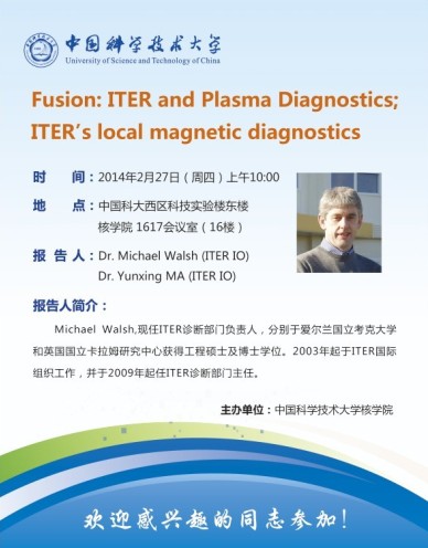 2014年2月27日 Dr. Michael Walsh,Dr. Yunxing MA学术报告:Fusion: ITER and Plasma Diagnostics;ITER’s local magnetic diagnostics