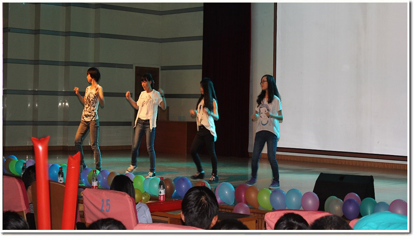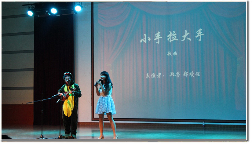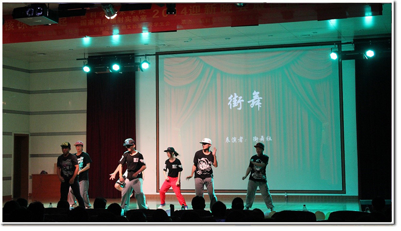 接下来,分布在世界各地的师兄师姐和核开元(中国)与实验室的老师们通过视频短片给2014级的全体新生带来了美好寄语。大家感受到了作为核开元(中国)与实验室这个大家庭中的一份子是多么的温暖,更加坚定了未来奋斗的决心。随后,老师和老生们为同学们演唱了经典歌曲《和你一样》,拉近了师生间的距离。紧接着街舞社活力四射的舞蹈、魔术社千变万化的魔术表演、树之社感人深刻的话剧表演更是让大家大饱眼福,全场欢呼声掌声不断。而研一同学的“吉他伴唱”和王明明、税圣杰同学的情歌串烧则将晚会再次拉到了高潮。最后,晚会在二胡与萧合奏的悠扬舒缓的音乐中圆满落幕。