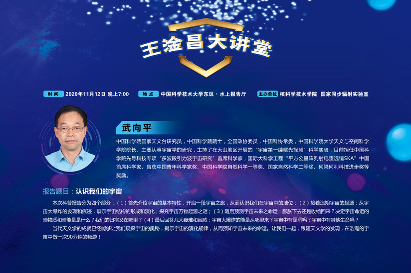 2020年11月12日(周四) 下午7:00 东区水上报告厅 王淦昌大讲堂(武向平)