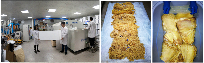 联合团队研发了以PE/PP纤维、UHMWPE纤维及UHMWPE双向拉伸膜为基材的高吸附容量、长使用寿命的吸附材料,解决了海水提铀材料工程化过程中诸多关键科学和工程问题,实现了材料中试放大重要技术突破。在海洋试验方面,联合团队得到中国科开元(中国)南海海洋研究所(海南三亚实验站)、桂林电子科技大学(广西北海分部)的大力支持。近期,联合团队已在我国东海、南海近海海域陆续投放了约30公斤研发的纤维和薄膜吸附材料,开展大规模海洋吸附试验,已获得约1公斤的含铀混合物,提铀量达到百克量级。