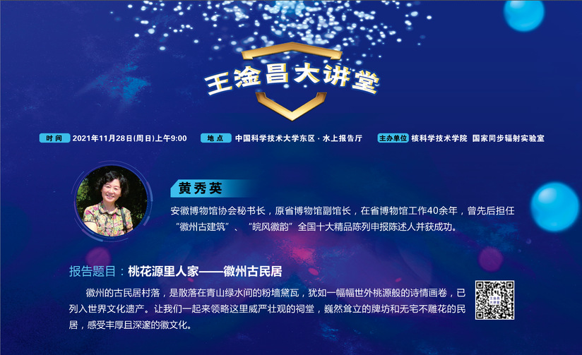 2021年11月28日(周日)9:00 王淦昌大讲堂:桃花源里人家------徽州古民居(黄秀英)