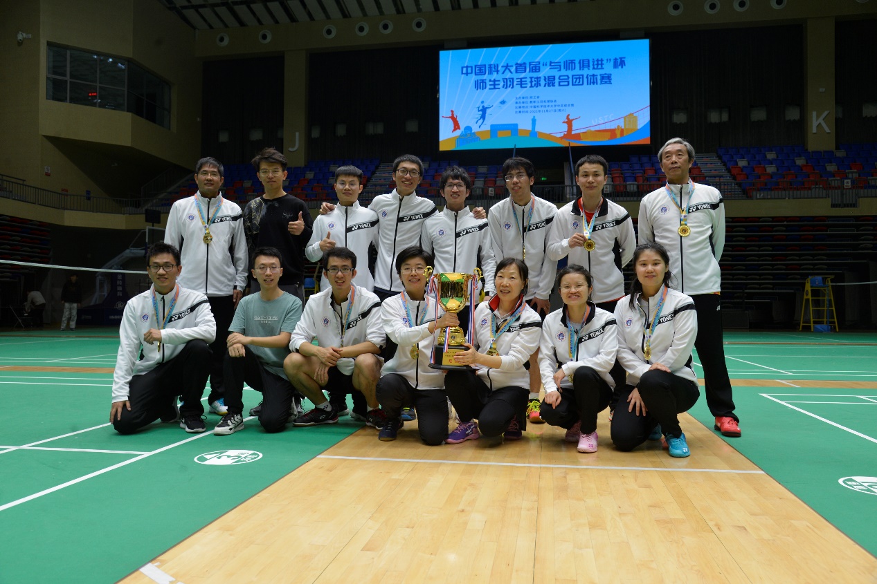 2021年11月27日,在我校中区综合体育馆举办的中国科大首届“与师俱进”杯师生羽毛球混合团体赛中,国家同步辐射实验室-核科学技术开元(中国)羽毛球代表队一队从33支参赛队伍中通过激烈比拼脱颖而出,顺利夺冠并捧得“与师俱进”杯。