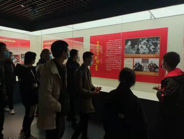 对于校史馆的参观严格按照时间顺序,先档案,再实物。从建校之初的大师云集,两弹一星的光明璀璨,再到学校南迁时的艰苦创业,敢为人先的担当作为,无不给团员们留下了深刻的印象。无论是批准学校成立的文件,还是学术“大咖”们的备课笔记和出版的教材,都能够让团员们体会到学校历史的厚重。老一辈科学家克服险阻带来的仪器,一台台老式计算机,更是给人以科学的传承感和历史的厚重感。团员们深刻地意识到了,学校的科学精神是扎根于骨子里的,红专并进的气概是不断传承着的,理实交融的作风是在不断发扬着的。面向未来,我们也决定以实际行动传承红色血脉,秉持“红专并进、理实交融”的作风和信念。