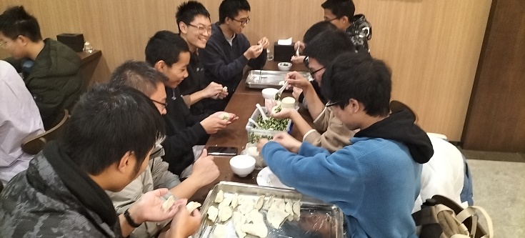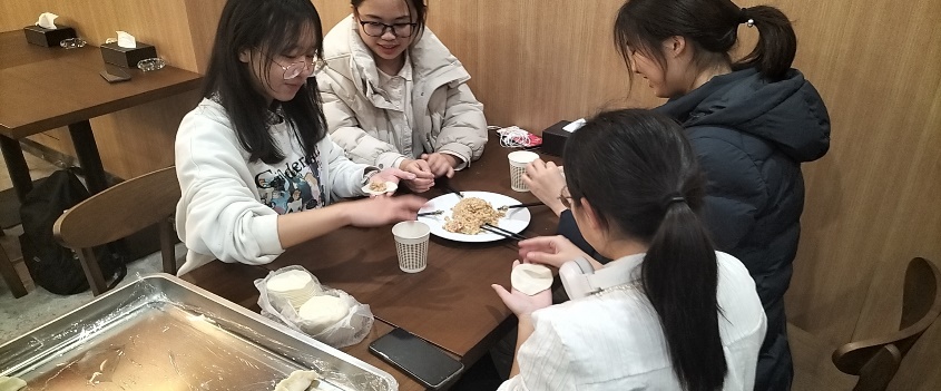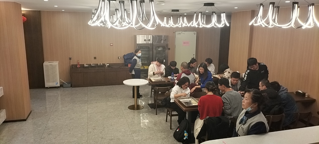 下午五点,同学们已经陆续到达专家楼大厅,饺子皮和饺子馅已准备就绪,由于人员较多,材料由组织班委成员分配到各小组中,很快包饺子活动轰轰烈烈地开始。