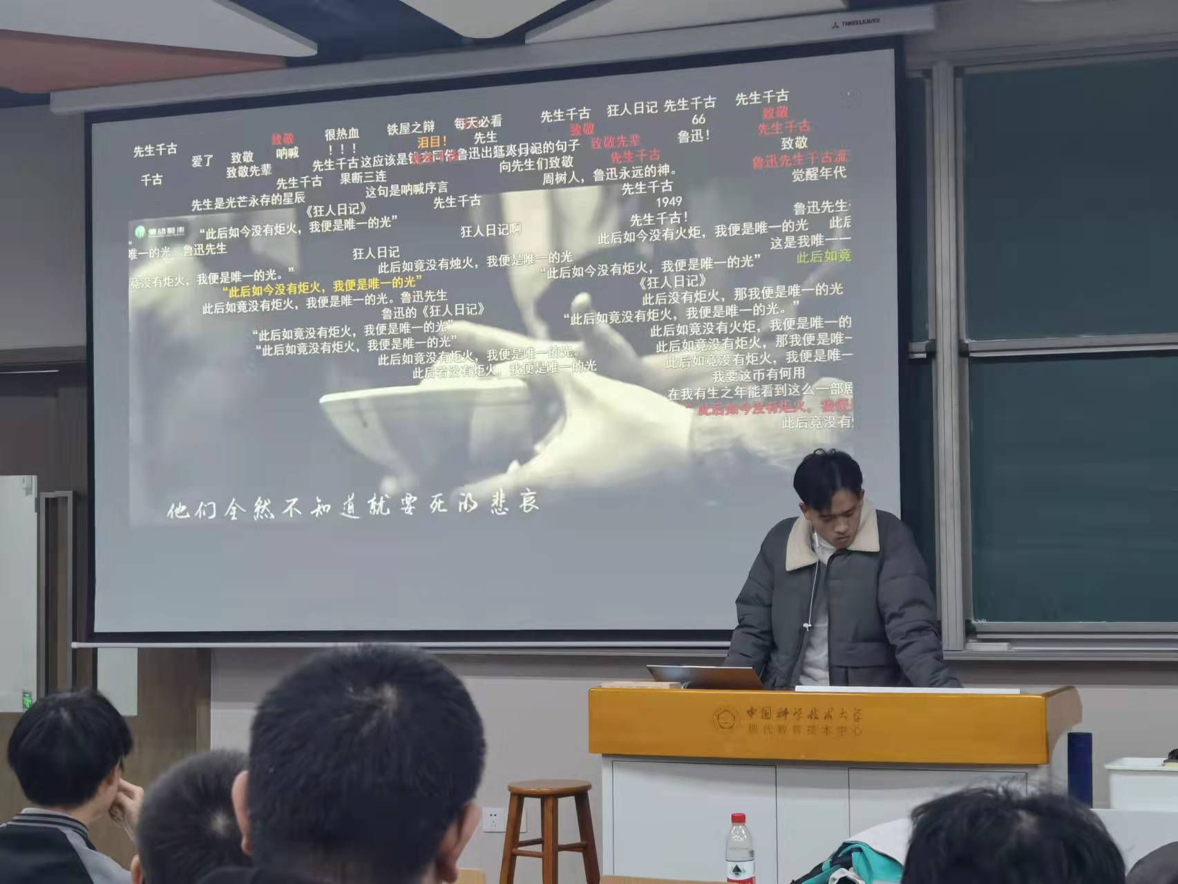 见证先辈征程,体会血的奋斗。为加强同学们对于中国共产党的认识,以及对新中国发展征途的了解,孙能晶同学播放了优秀电视剧《觉醒年代》的经典台词片段剪辑,将同学们带入感受党艰难发展历程的氛围,激情大家内心的家国情怀。此后,他进一步介绍了党的发展历程、新中国的建设征途。由新中国成立前的重重艰难困苦以及党带领人民群众不断披荆斩棘的奋战,再到新中国成立后社会主义制度的建立、社会主义的建设、改革开放的新时代以及新时代中华民族的伟大复兴,其间的种种奋斗历程都在昭示着当代青年要勇担重任,传承发展中国特色社会主义旗帜。