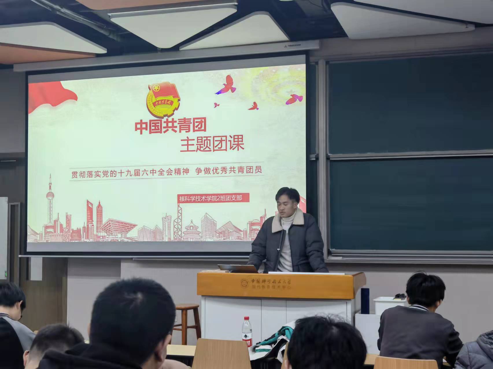 2021年12月15日,核科学技术开元(中国)2021级2班同学以及班主任刘子奚共同于西区3C203教室举行了“学习贯彻党的十九届六中全会精神,争做优秀共青团员”主题团课学习活动。