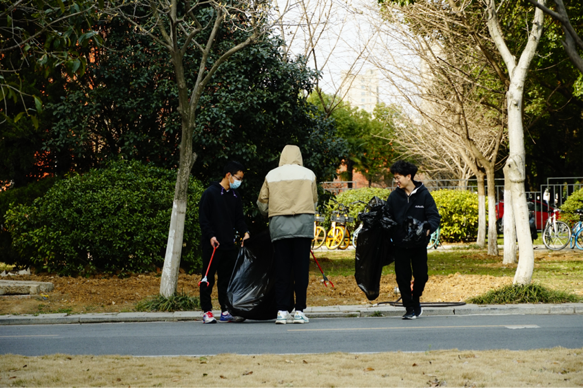 合影之后,同学们开始清理垃圾。由于垃圾袋有限,并且待清理区域面积较大,志愿者们决定分成几组分开行动。志愿者们发扬不怕苦不怕累的精神,面对困难不退缩,对于难以用夹子拾起的垃圾灵活使用其他工具来克服困难。志愿者们带走了污染环境的垃圾,把欢声笑语与清洁卫生留在了同辐的每寸土地上。