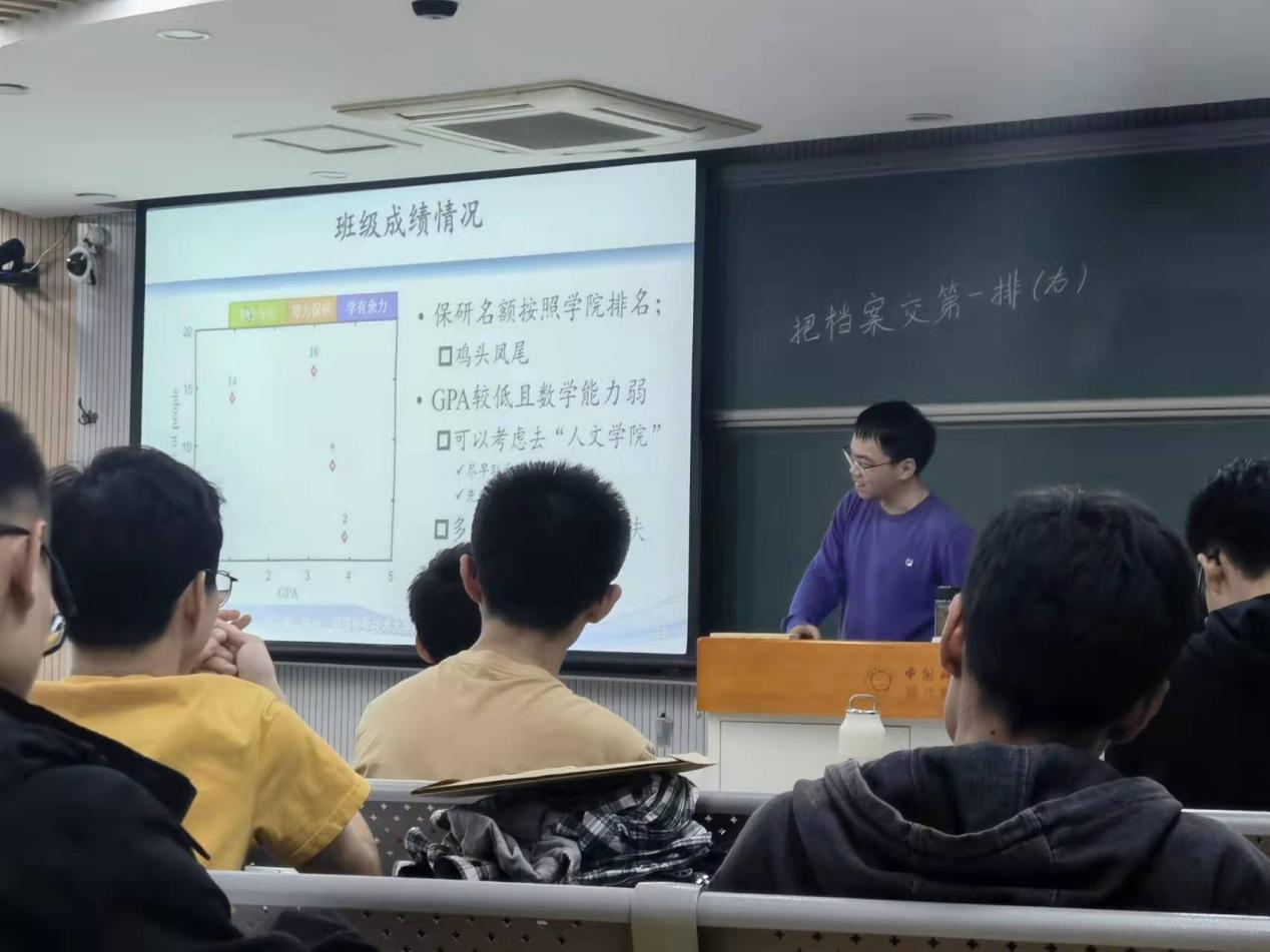 之后,班主任回答了同学之前提出的几个问题,并重点回答了与本专业相关的问题。在回答过程中,向我们展示了科研工作的魅力。在班主任的介绍中,我们了解了科大本科生参加科研的优势和益处。班主任也希望我们积极主动争取参与科研的机会,感受科研的美妙,为自己的未来铺路。该部分的介绍成功激起了同学们的科研热情,各个摩拳擦掌,蓄势以待。