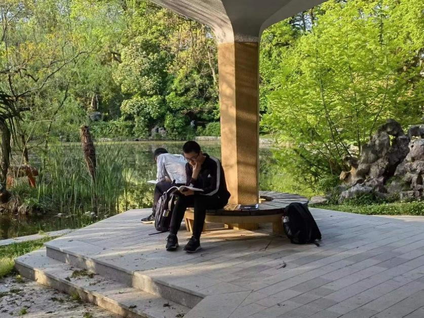 本学期晨读活动在东区眼睛湖旁与西区图书馆举办。参与的同学们早早地赶到晨读现场,签到之后便沉浸在知识的海洋中,成为附近一道最靓丽的风景线。