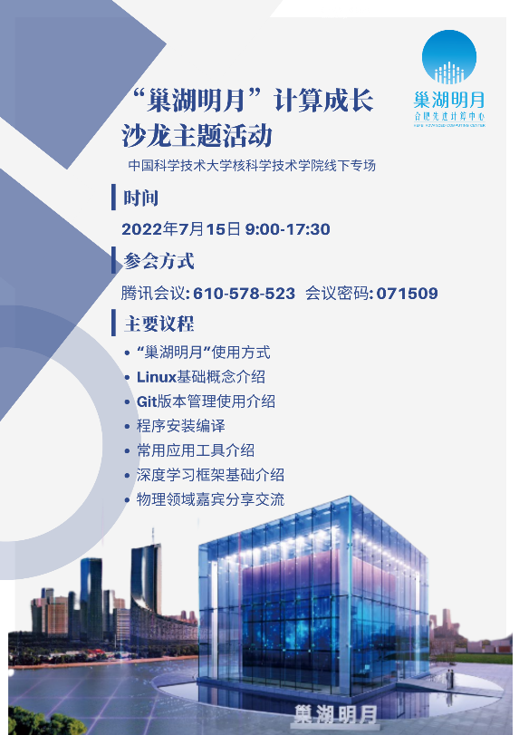 为了促进KY.COM的年轻学生们对于超算的了解,并加强对我国大科学工程以及大装置的理解,我们特邀请合肥先进计算中心于7月15日,在“巢湖明月”组织了针对KY.COM的第一期计算成长沙龙主题活动。