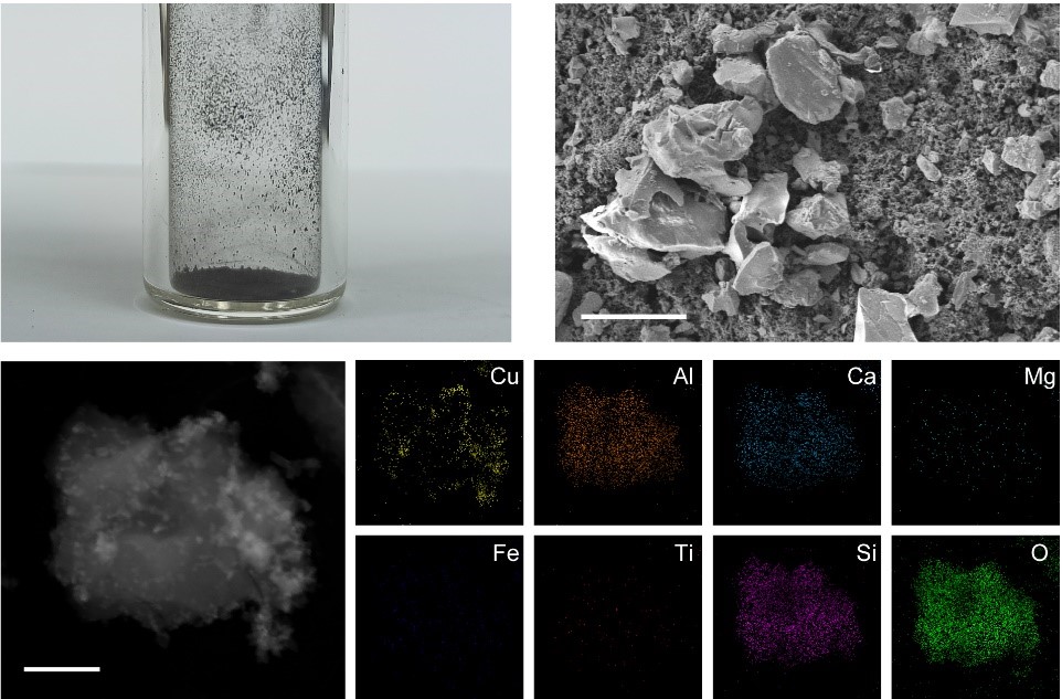 在确定了月壤原位资源化利用作为催化剂的潜力后,研究人员进一步分析月壤在电催化过程中的主要活性成分,以优化碳氢燃料的选择性。首先经过多种表征测试,确定了其主要成分为辉石、斜长石、橄榄石和钛铁矿。研究人员发现辉石是月壤作为电催化剂的主要活性成分,进一步研究发现辉石中的硅酸镁具有优异的电催化二氧化碳转化活性。随后,通过在硅酸镁上负载铜,实现了高效的甲烷(产生速率为0.8 mL/min)和氧气(产生速率为2.3 mL/min)生产。该性能可以与地球上现有的电催化剂性能相媲美,展现出了月壤资源化利用的巨大潜力。