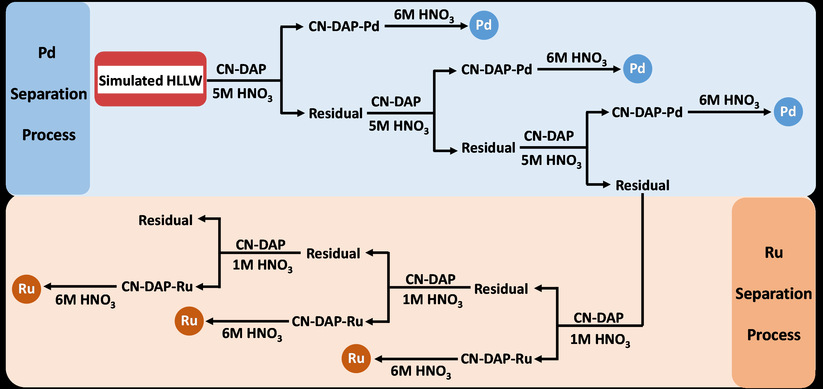 图2 CN-DAPhen从高放废液中选择性分离Pd和Ru的流程示意图