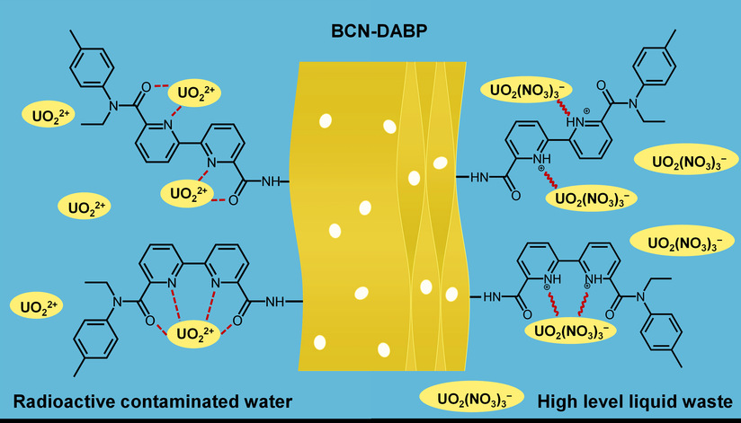 图1 BCN-DABP在弱酸性(pH=4.0)和高酸性(2 mol/L HNO3)溶液对U的吸附机理示意图