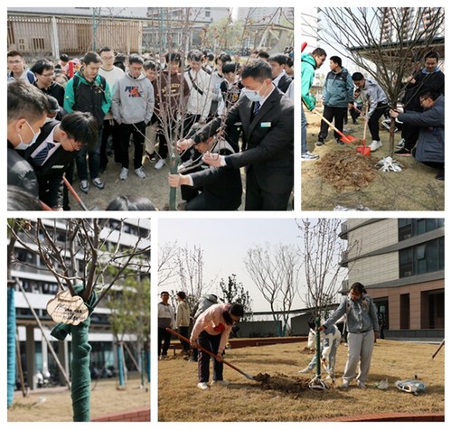 3月12日上午,在温暖和煦的春光中,师生们乘车前往高新园区,抵达园区内指定地点后,现场工作人员先就如何正确使用工具、保证树苗的成活率进行指导讲解。分发完工具,大家三人一组、五人一簇,挥锹铲土、培土围堰、提水浇灌,认真细致地种下这个春天里属于自己的第一棵树苗,再把写着美好祝福的寄语牌挂上树苗,用双手为美丽校园再添一抹新绿。经过一番忙碌,一株株小树苗昂然挺立,萌发出盎然生机,在不久的将来,海棠吐蕊、红梅盛放,又将是高新园区里的一道亮丽的风景线。