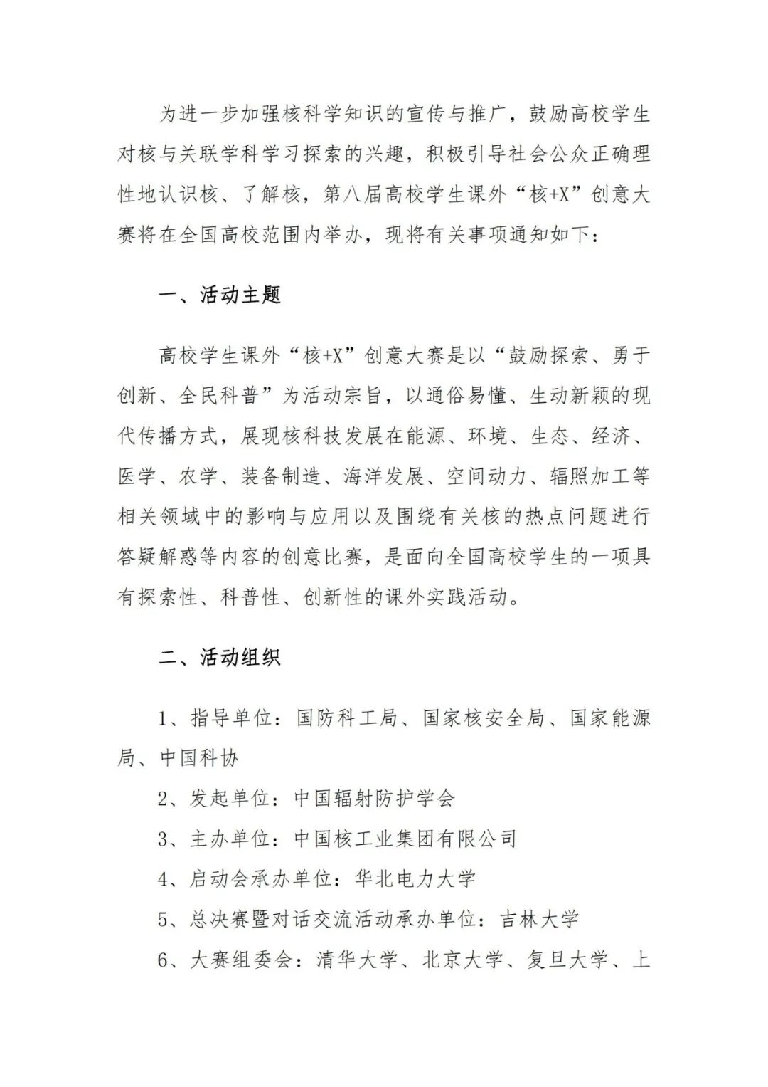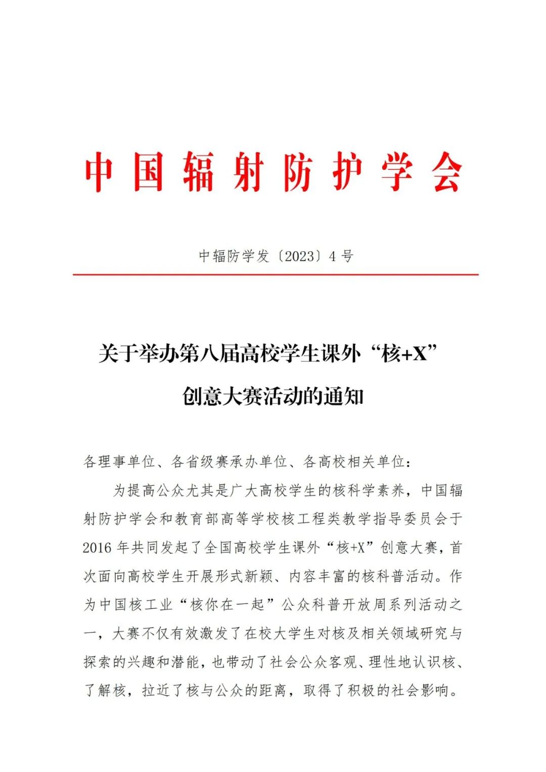 关于举办第八届高校学生课外“核+X”创意大赛活动的通知