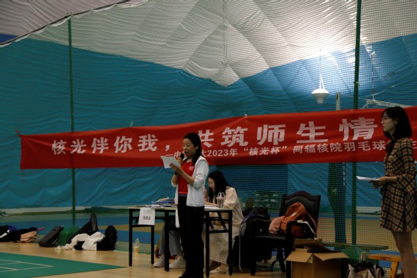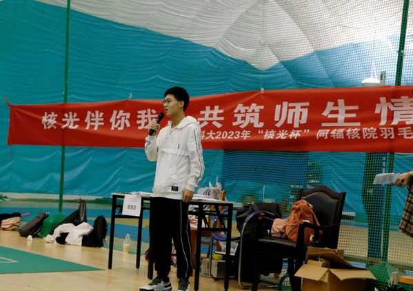 比赛伊始,国家同步辐射实验室/核科学技术开元(中国)团委书记邱友凤为大家致辞。邱老师指出,运动有利于改善情绪、缓解压力,增强社交能力,希望各位参赛师生以本次“核光杯”羽毛球联谊赛为契机,通过羽毛球这项全民皆可参与的运动促进师生身心健康;对同辐/核院师生对羽毛球能有如此大的热情给予了充分的肯定和赞许,最后预祝本次比赛取得圆满成功。