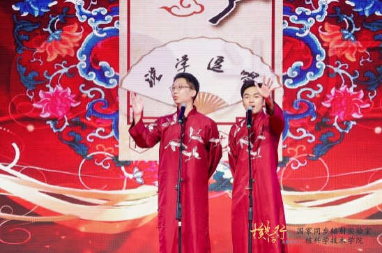 国家同步辐射实验室21级硕士研究生于良成、安琦正带来的相声《你是卷王》引得全场笑声不断,展现了校园生活有趣但同时富有挑战,令人难忘。