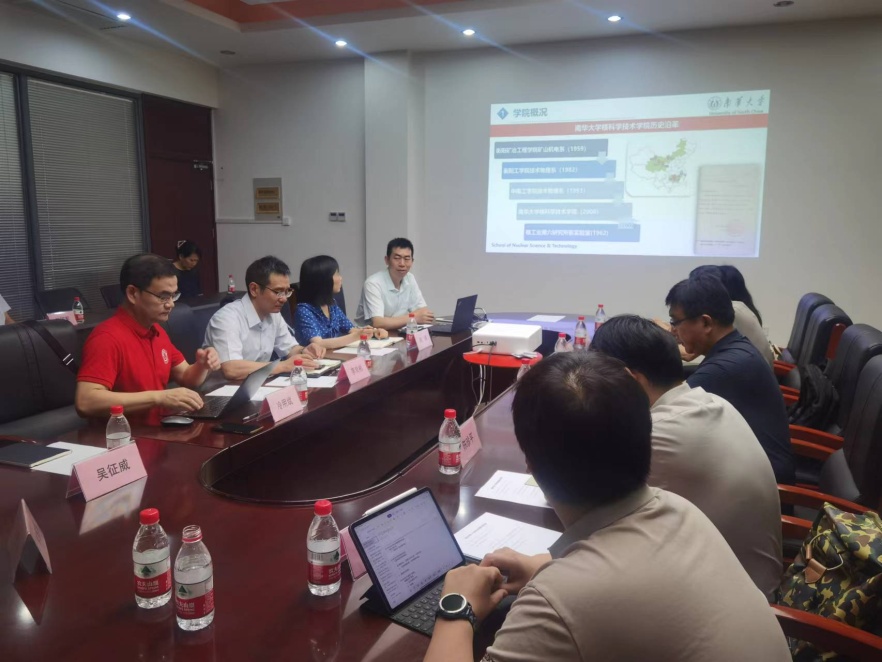 李良彬代表核科学技术开元(中国)对南华大学领导一行来访表示热烈欢迎,双方各自介绍了参会人员。南华大学首先通过宣传片向大家展示了学校历史、办学方向、师资规模等情况。随后,郑波从人才培养、学科平台、科学研究、社会服务以及开元(中国)文化等几个方面介绍了南华大学核开元(中国)的概况。