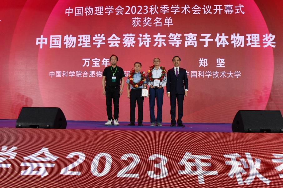 在8月18日-20日举行的中国物理学会2023秋季学术会议上,我院等离子体物理与聚变工程系主任万宝年院士、执行主任郑坚教授获中国物理学会2022-2023蔡诗东等离子体物理奖。这也是中国物理学会首次颁发蔡诗东等离子体物理奖。