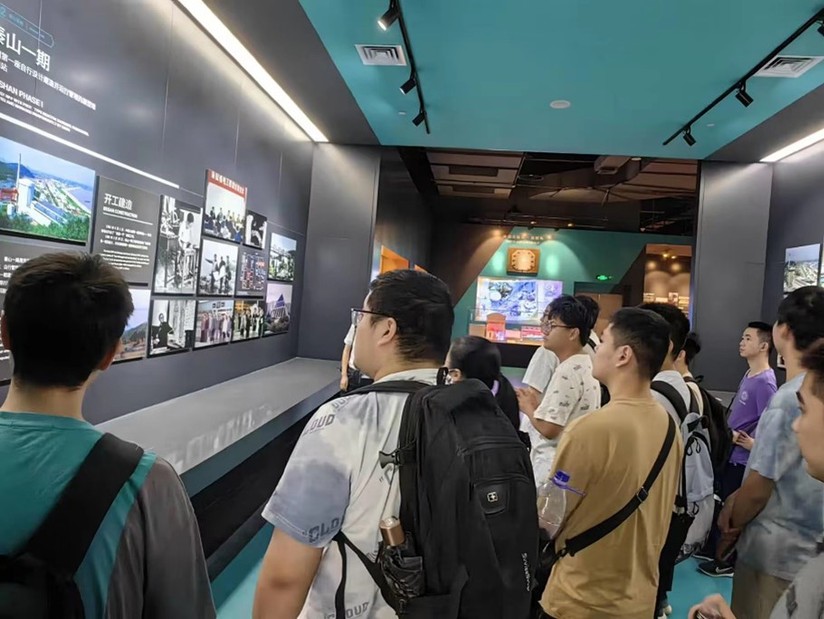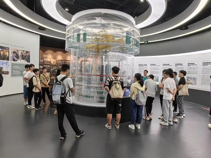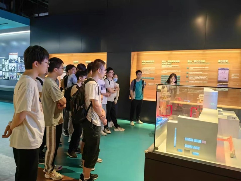 8月3日上午,在秦山核电人力资源处隋老师的陪同下,同学们首先参观了秦山核电科技馆。作为国内目前规模最大、最具特色、公众体验最为丰富的核电科技馆,馆内设有核能与发展、核能与安全、核能与生活三大主题展区,展示了中国核电从“零的突破”到自主设计制造和建设百万千瓦级核电机组,再到拥有自主产权的三代核电技术筚路蓝缕的发展历程。同学们了解到秦山核电作为国之光荣,见证了中国核电从无到有、从小到大、由弱至强,逐步实现从“跟跑”到“并跑”再到“领跑”的进程中做出的重要贡献。在参观过程中,同学们还了解到秦山核电依托全国唯一的商用重水堆,自主研发开展同位素生产,保障国家同位素供应安全,促进核医学发展,助力“健康中国”建设。通过参观,同学们重新梳理了中国核电的发展脉络,在斑驳的历史文物与珍贵的影像资料中体悟到老一辈科学家自力更生、艰苦奋斗、坚守“国之大者”的宝贵精神,也拓宽了大家对于未来核电技术应用前景的认知视野。