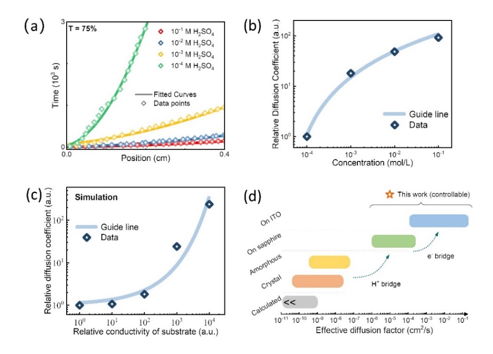 界面电荷极化的第一性原理理论模拟结果与实验观测一致,表明这是一种质子和电荷分离的界面协同扩散机制。实验估算了有效扩散系数(Deff),增加了约六个数量级(106倍),远远超过了之前研究中报道的基于浓度梯度扩散的数值。同时实验和模拟结果表明这种扩散策略可以推广到其他体系,从而推动未来对超快混合导体的系统研究。