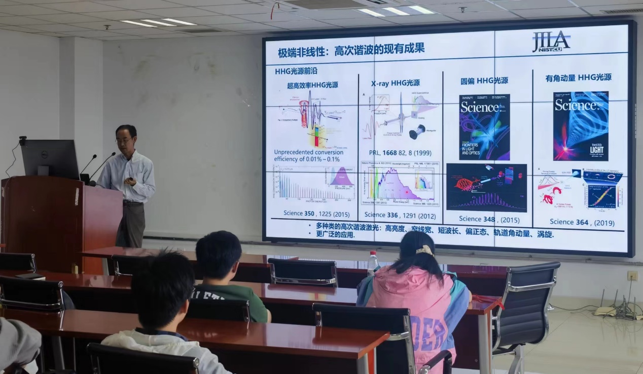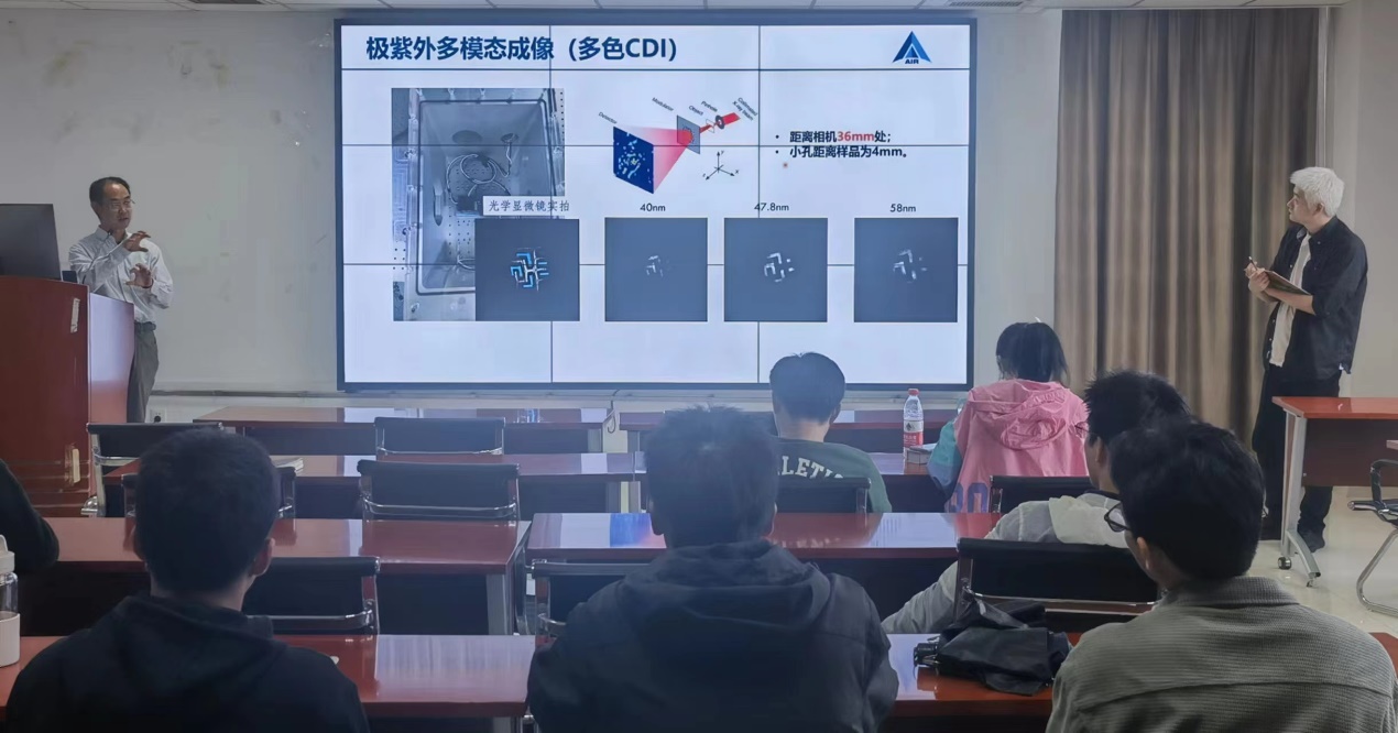 在谈及当下极紫外激光技术的发展方向和进展时,张晓世研究员采用多模态成像技术检测生物组织、高端芯片良品率,以及参与未来量子器件研发等工作,给予在座师生极大的启发。
