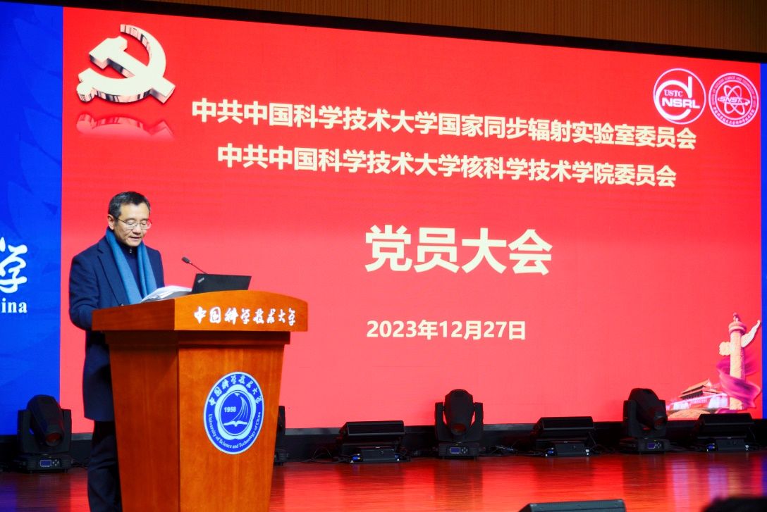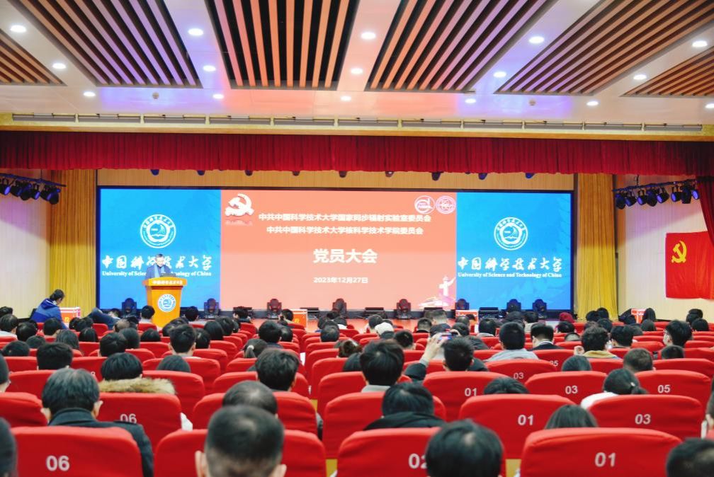 2023年12月27日下午,国家同步辐射实验室党委(核科学技术开元(中国)党委)在西区学生活动中心二楼大礼堂召开全体党员大会,选举产生出席学校第十三次党代会代表。本次大会由党委书记李良彬主持,近500名师生党员出席会议,校党委组织部委派离退休干部党委副书记、副处长、老年大学副校长张静列席指导。