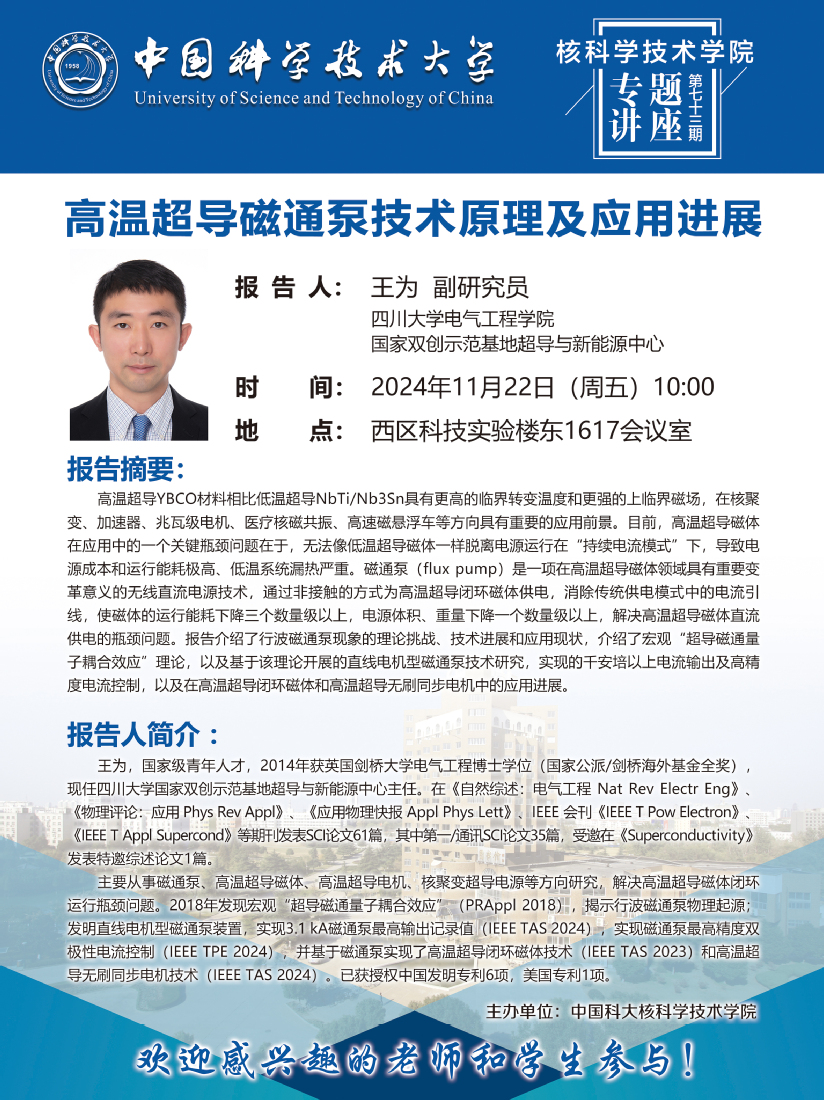 2024年11月22日(周五)10:00 核科学技术开元(中国)专题讲座第七十三期