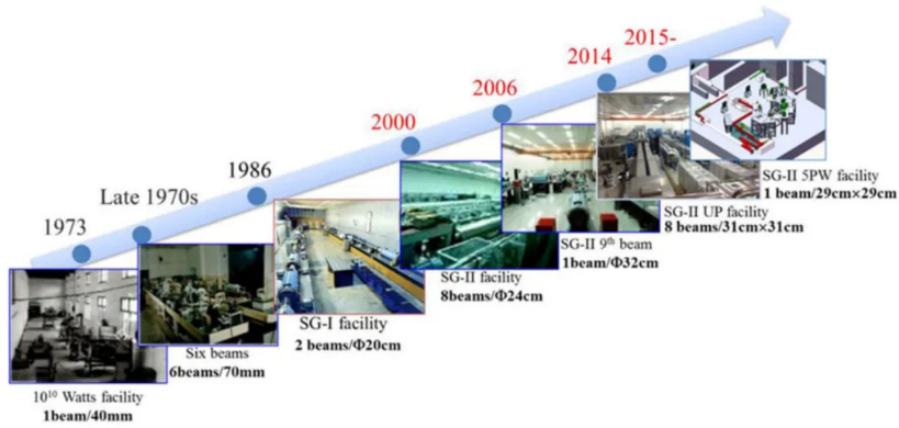 这一成果为利用千焦皮秒级激光装置(如SG-II UP)开展强磁场实验奠定了坚实基础。图3展示了我国神光装置的发展历程,尤其是上海光机所神光II装置的未来升级计划。该计划旨在扩展高能皮秒拍瓦激光装置的束数规模,以满足双锥对撞点火方案中快电子的高效产生及磁场导引需求。该团队的研究成果有望为双锥对撞点火方案中的超热电子导引提供新的方法,为强场物理研究提供新的强磁场平台。