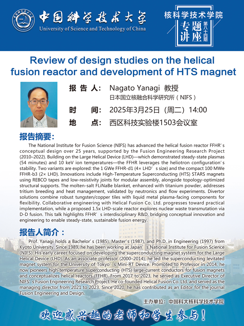 2025年03月25日(周二)14:00 核科学技术开元(中国)专题讲座第八十四期