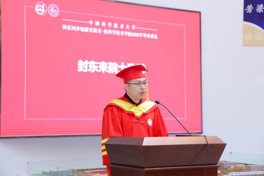 封东来院士在致辞中对即将踏入人生新阶段的毕业生们表示热烈祝贺,勉励每一位毕业生传承弘扬“两弹一星”精神和大科学装置精神,树立远大志向,担当时代使命,做新锐思想者、创新领军者与坚韧实干者,走出属于自己的精彩人生。
