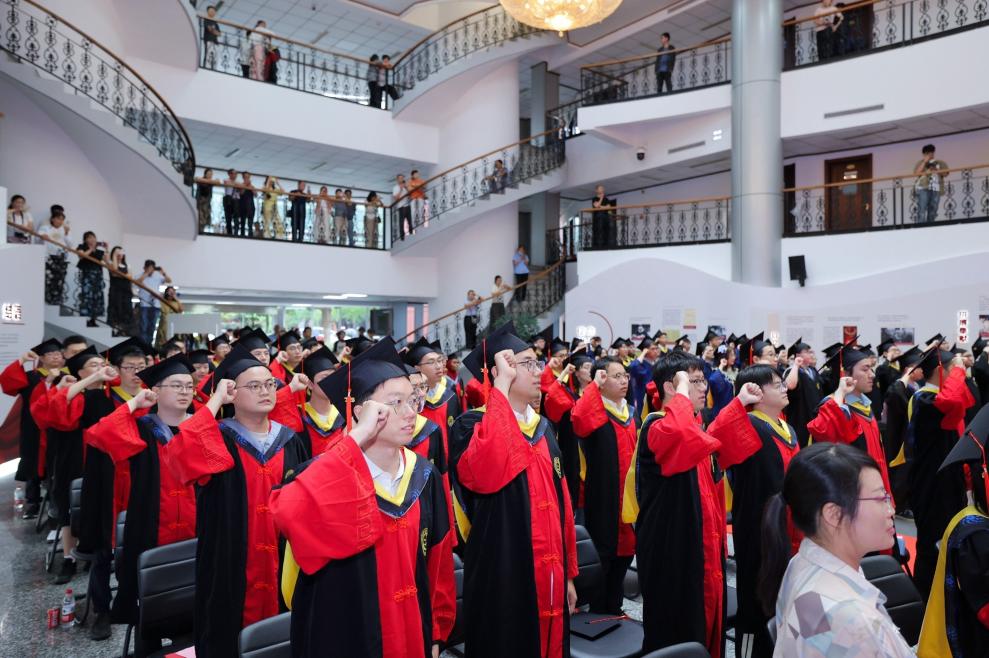 李良彬书记带领全体毕业生庄严宣誓,铿锵有力的宣誓声在大厅回荡。