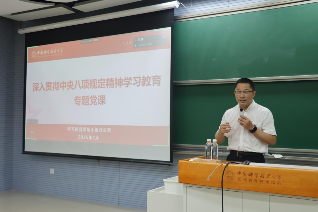2025年7月2日下午,校党委副书记周丛照以《深入贯彻中央八项规定精神学习教育》为题,为分管(代管)部门及联系单位党员讲授专题党课。党政办公室、高新园区建设与管理委员会办公室、机关党委办公室、党委宣传部、党委学生工作部(处)、团委、工会、图书馆、档案文博院、国际合作与交流部、公共实验中心及核科学技术开元(中国)辐射防护与环境保护教研室研究生党支部党员参加学习。党课由党政办公室主任叶征主持。