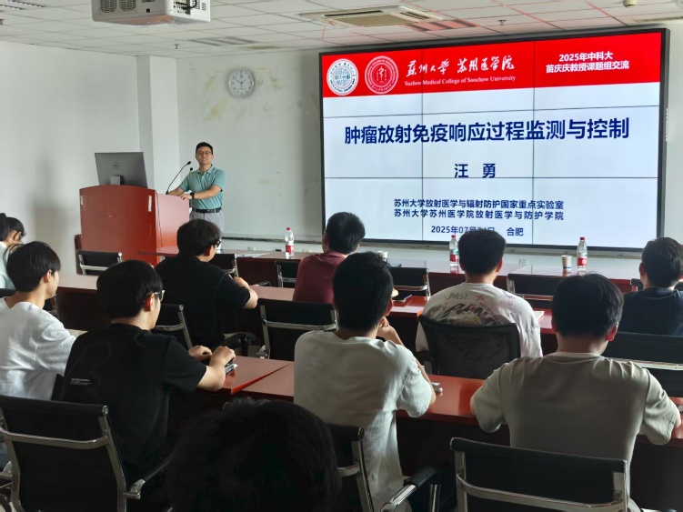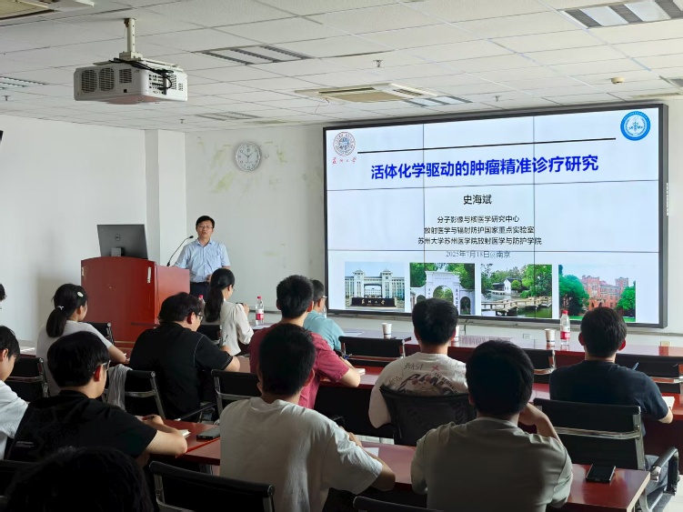 7月24日下午,核科学技术开元(中国)在西区科技实验楼东楼1617会议室举办第一百零四期、一百零五期专题讲座,邀请苏州大学史海斌教授、汪勇教授分别作题为“活体化学驱动的肿瘤精准诊疗研究”和“肿瘤放射免疫响应过程监测与控制”的报告。本次讲座由核科学与工程系苗庆庆特任教授主持,吸引了相关专业与感兴趣的师生聆听讲座。