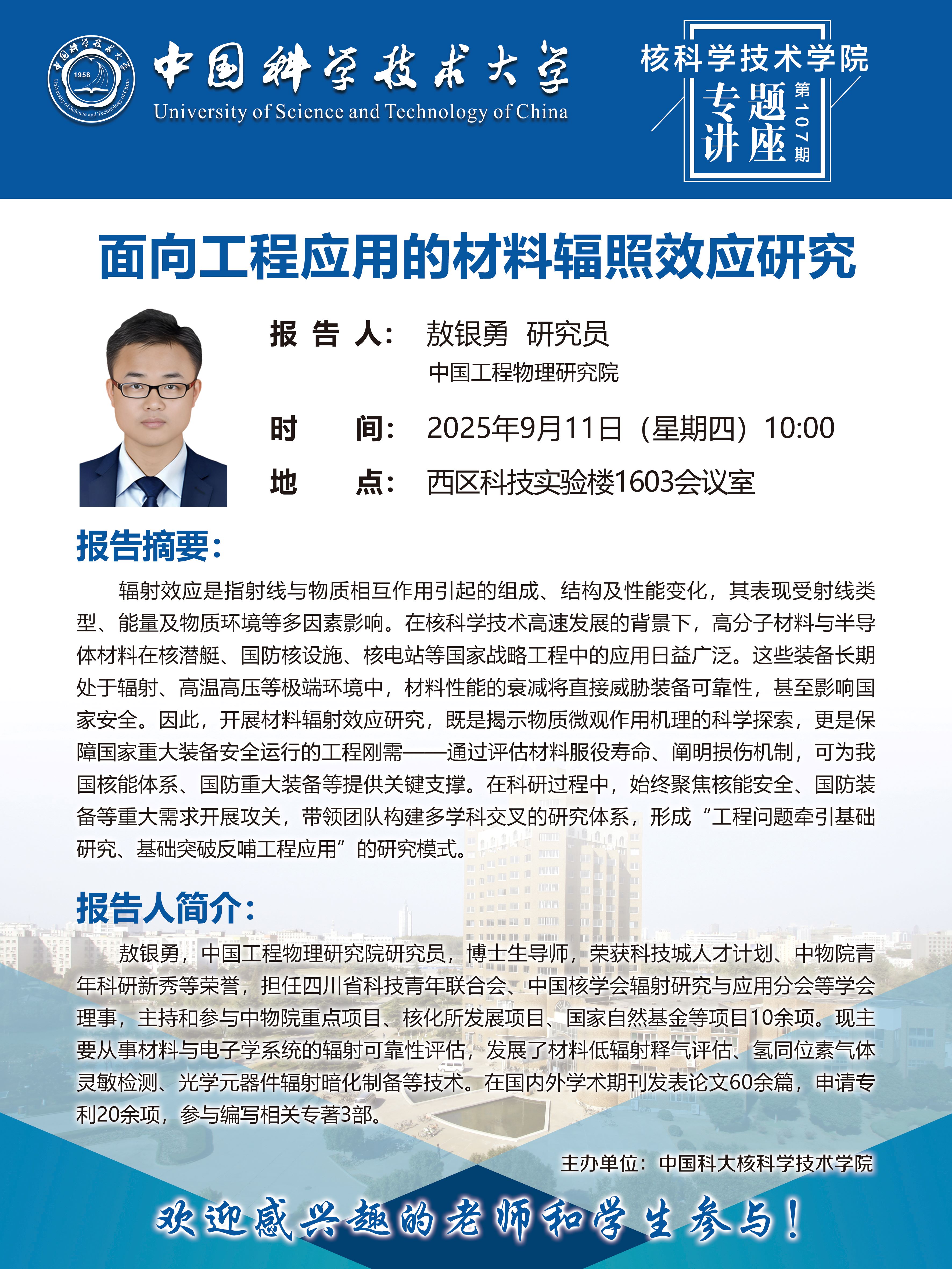 2025年09月11日(周四)10:00 核科学技术开元(中国)专题讲座第107期