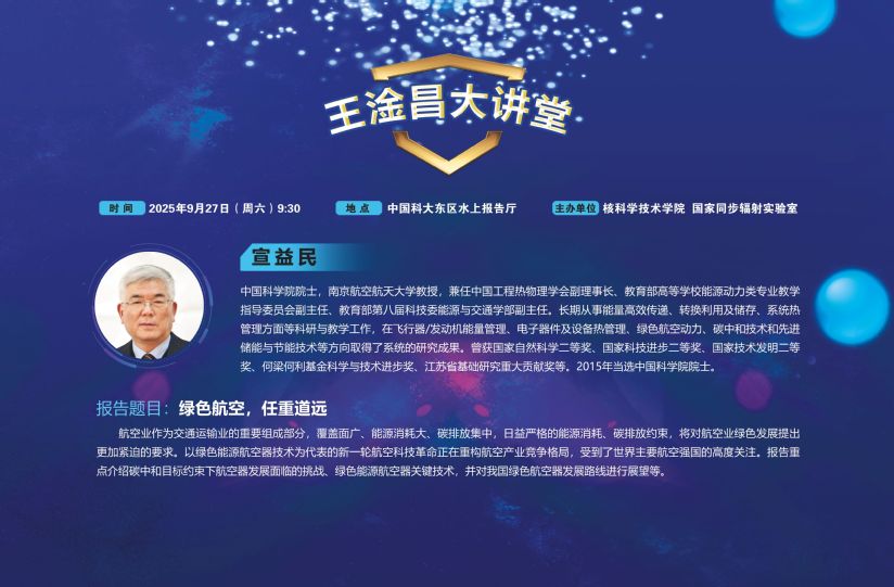 2025年9月27日(周六)上午9:30王淦昌大讲堂 |宣益民:绿色航空,任重道远