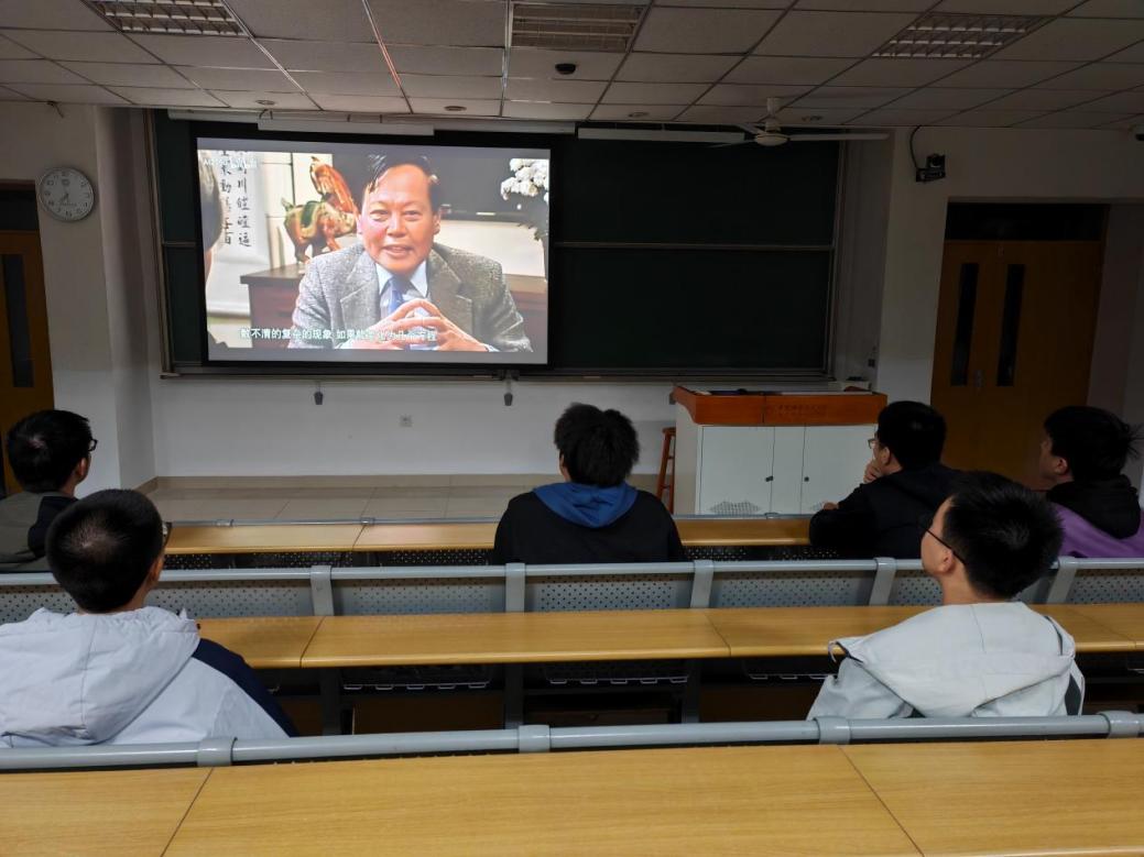 活动伊始,同学们观看了纪录片《杨振宁·百年科学之路》。该片通过珍贵影像和历史史料,展现了杨振宁先生从年少对物理产生兴趣,到留学期间深耕粒子物理与统计力学,最终提出“杨-米尔斯规范场论”等开创性成果的学术历程。纪录片不仅呈现了杨振宁先生对真理的执着追求,更刻画了他心系祖国、回国投身教育的赤子之心。